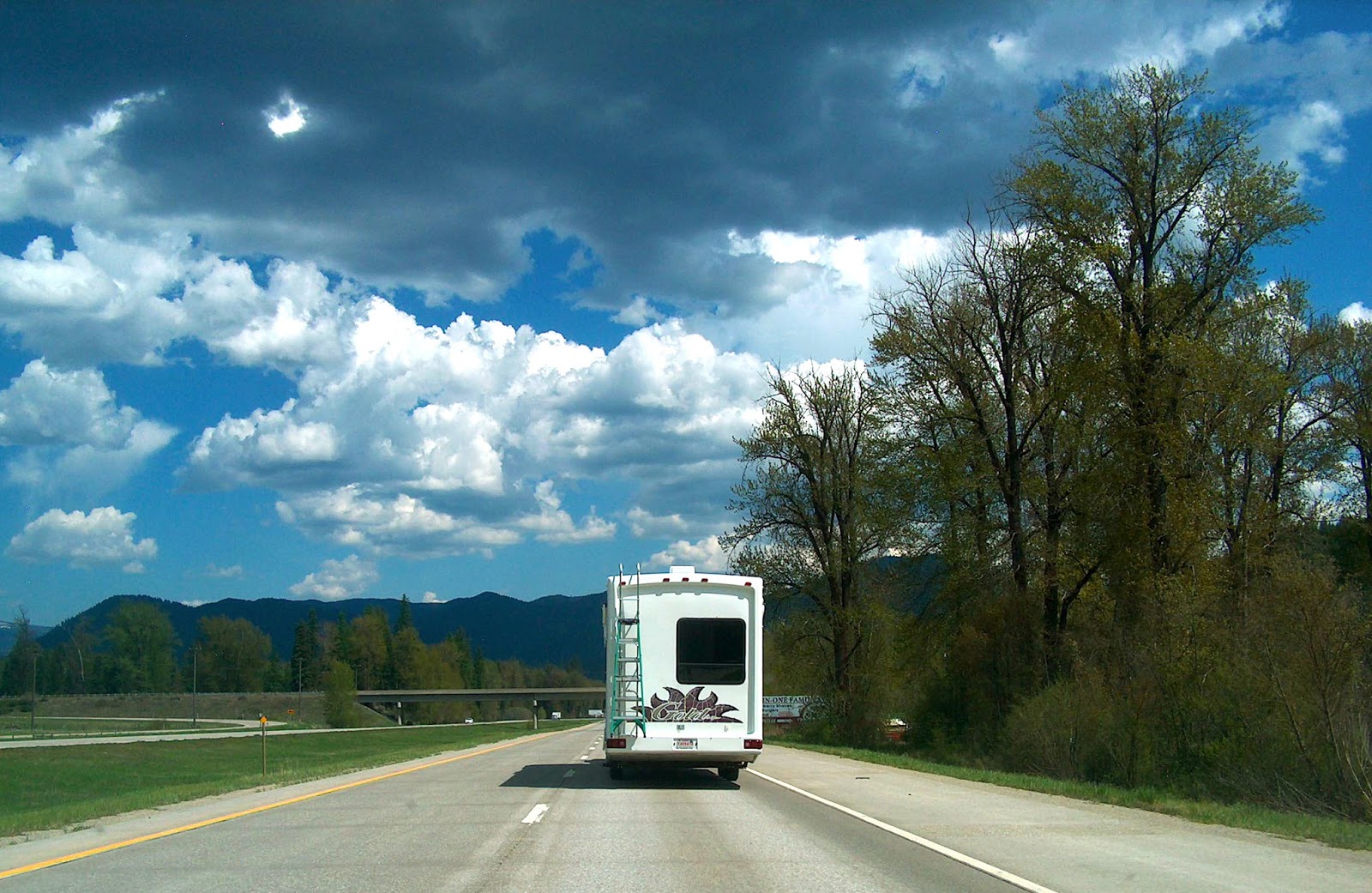 I love the sky here — Big Sky Country! This is just across the border of Idaho and Montana, before Missoula. We had come over Lookout Pass and down into this valley. Coming into Montana almost feels like coming home, since we worked two summers at the KOA in Missoula and traveled all around this gorgeous countryside.